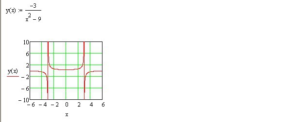 График в отдельном файле. Асимптоты графика - вертикальные линии при х=3 (при х=3 знаменатель равен нулю).