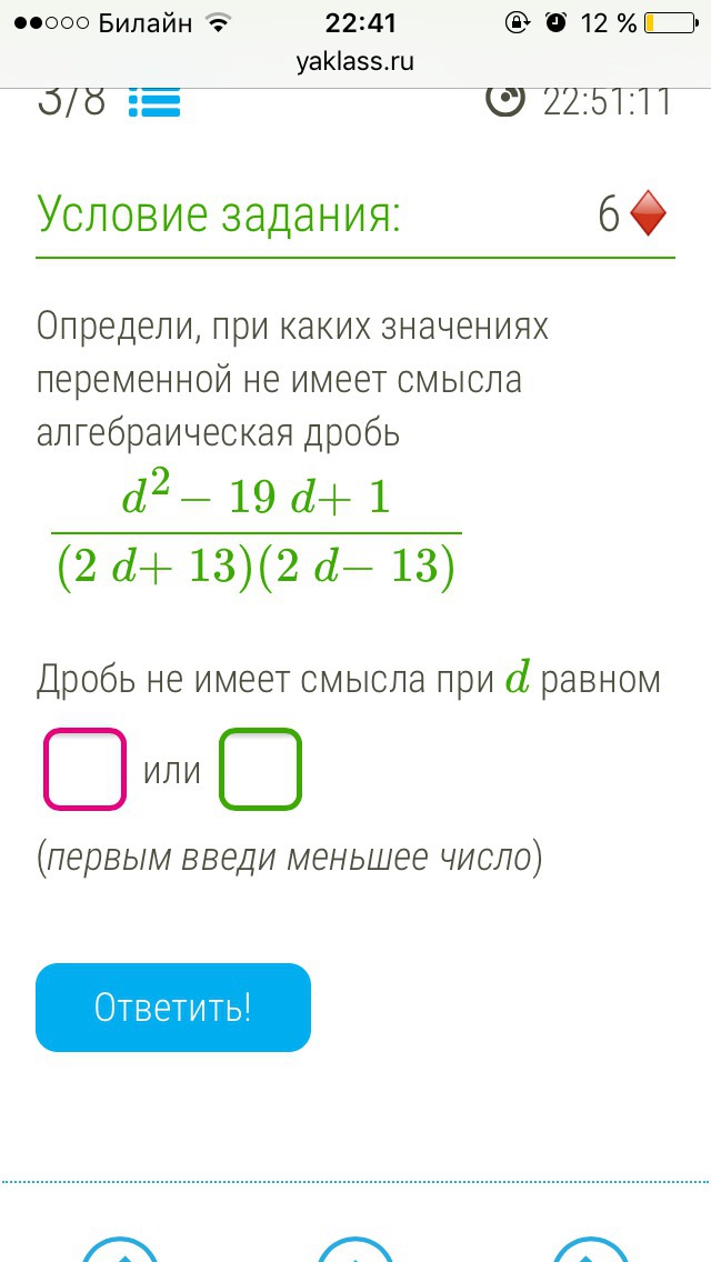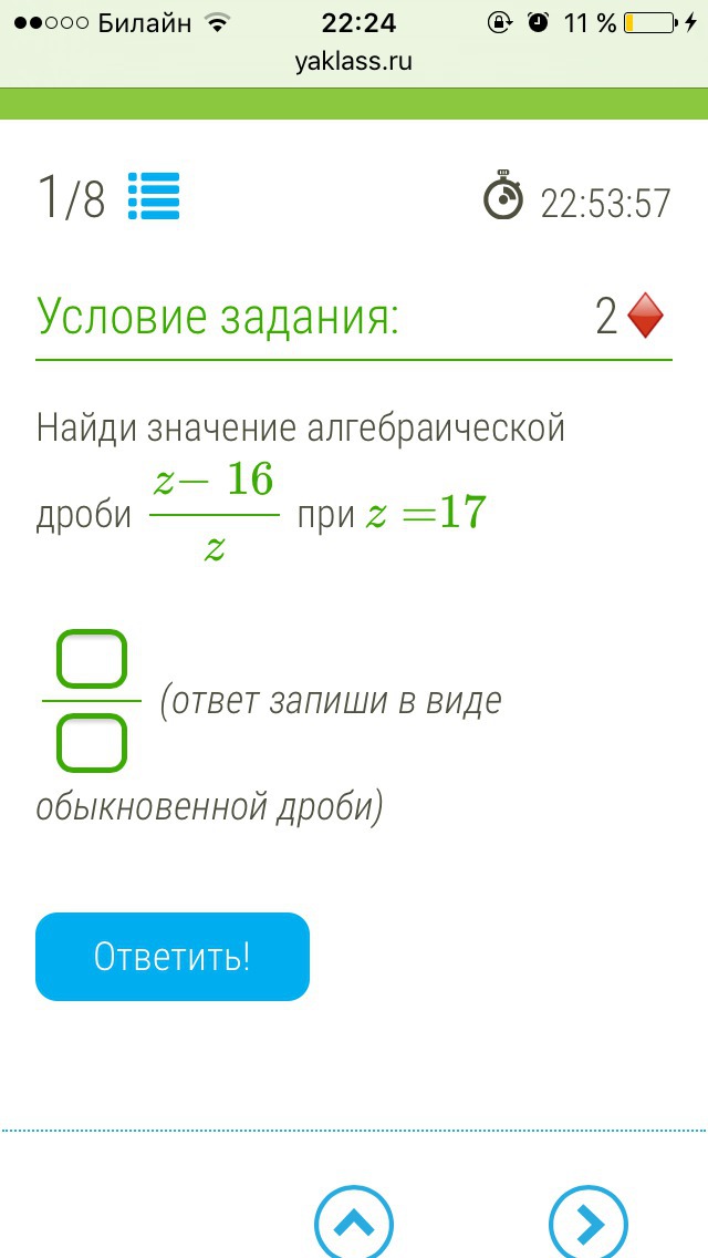 Дробь равна нулю, когда числитель равен нулю. Т.е. 1) y=7