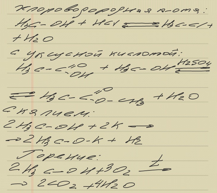 С какими из перечисленных веществ будет взаимодействовать метанол: Хлороводородная кислота, вода, глицерин, уксусная кислота, калий, кислород, кальций-гидроксид, этилен?