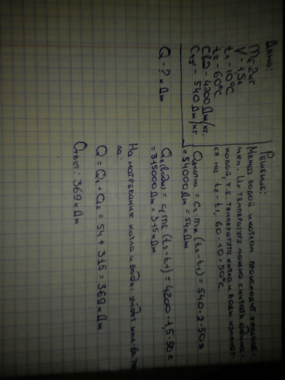 Да, кстати, возможно ты не разберешь, но с=4200 - это табличное значение для воды, для чугуна с=540. Вот, если интересно откуда взялась масса воды, когда известен только объем, то тут все просто. Работает следующее правило: