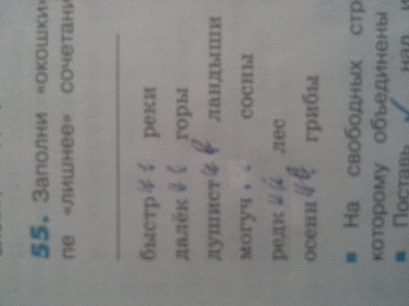 Словосочетание Редкий лес лишнее так как оно в единственном числе, а все остальные во множественном!