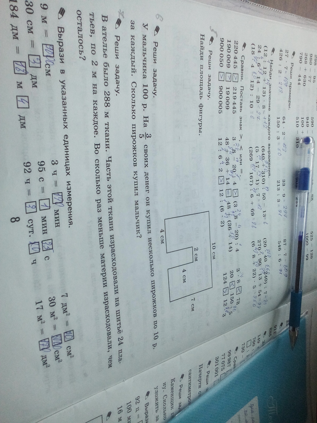 площадь= 10х7=70 см кв. - площадь 2х4=8 см. кв.