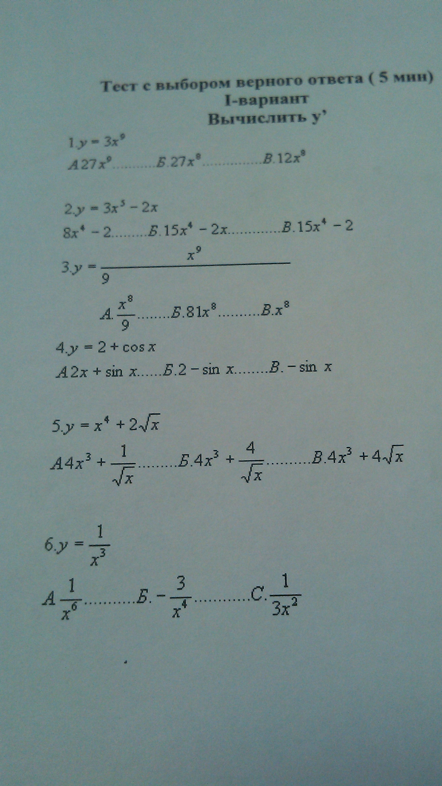 2. в у = 3х^5 - 2x у(штрих) = 15x^4 - 2