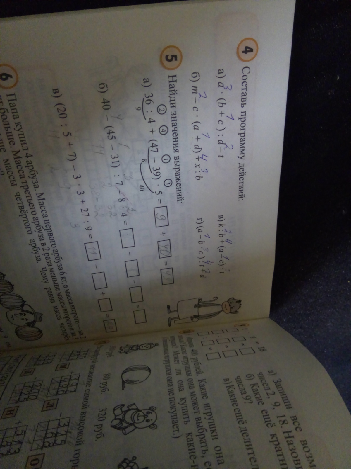 N5. б) 40-2-32=6; в)11-9+3=5.