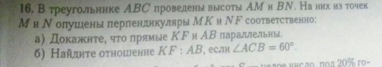 В ΔАВС проведены высоты АМ и BN. На них из точек M и N опущены перпендикуляры МК и NF соответственно.
