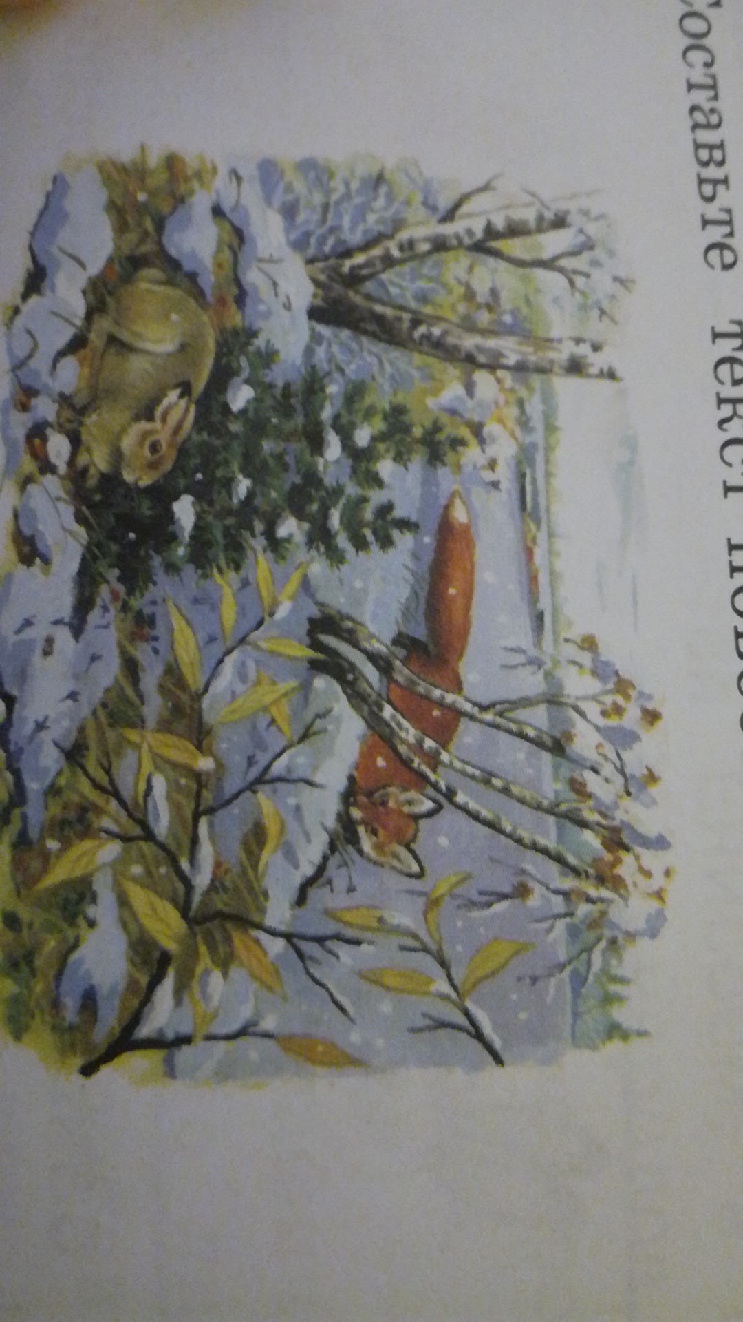 на рисунке изображена лиса которая следит за зайцем.на заднем фоне падают снег ну пока еще не придумал