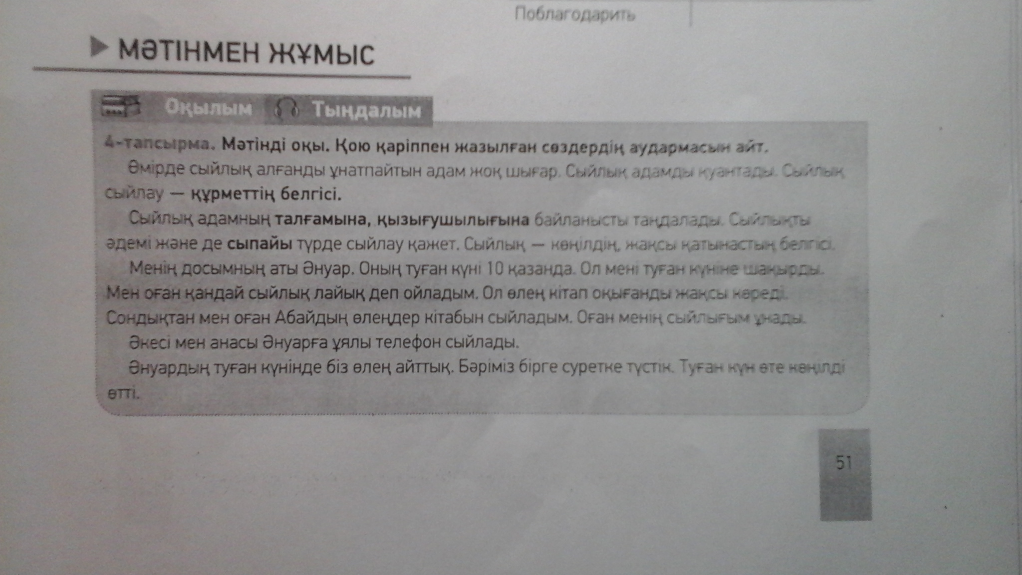Моего друга зовут Ануар. У него в десятое октября день рождение. Он позвал меня на вечеринку в честь его дня рождения. Я думал(-а) какой подарок ему подарить? Он любит читать стихотворные книжки. Поэтому я подарил ему сборник стихотворений Абая. Ему понравился мой подарок.