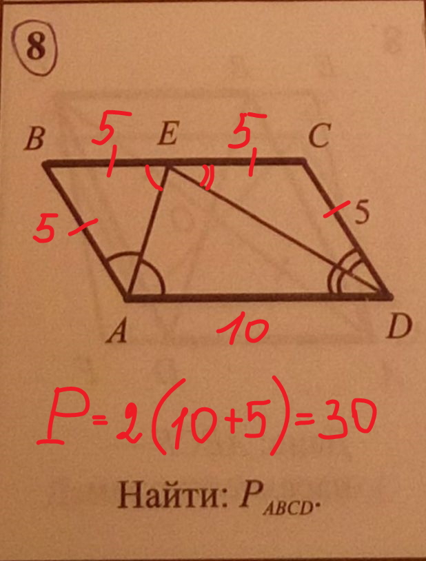 биссектриса --это секущая при двух параллельных сторонах параллелограмма...