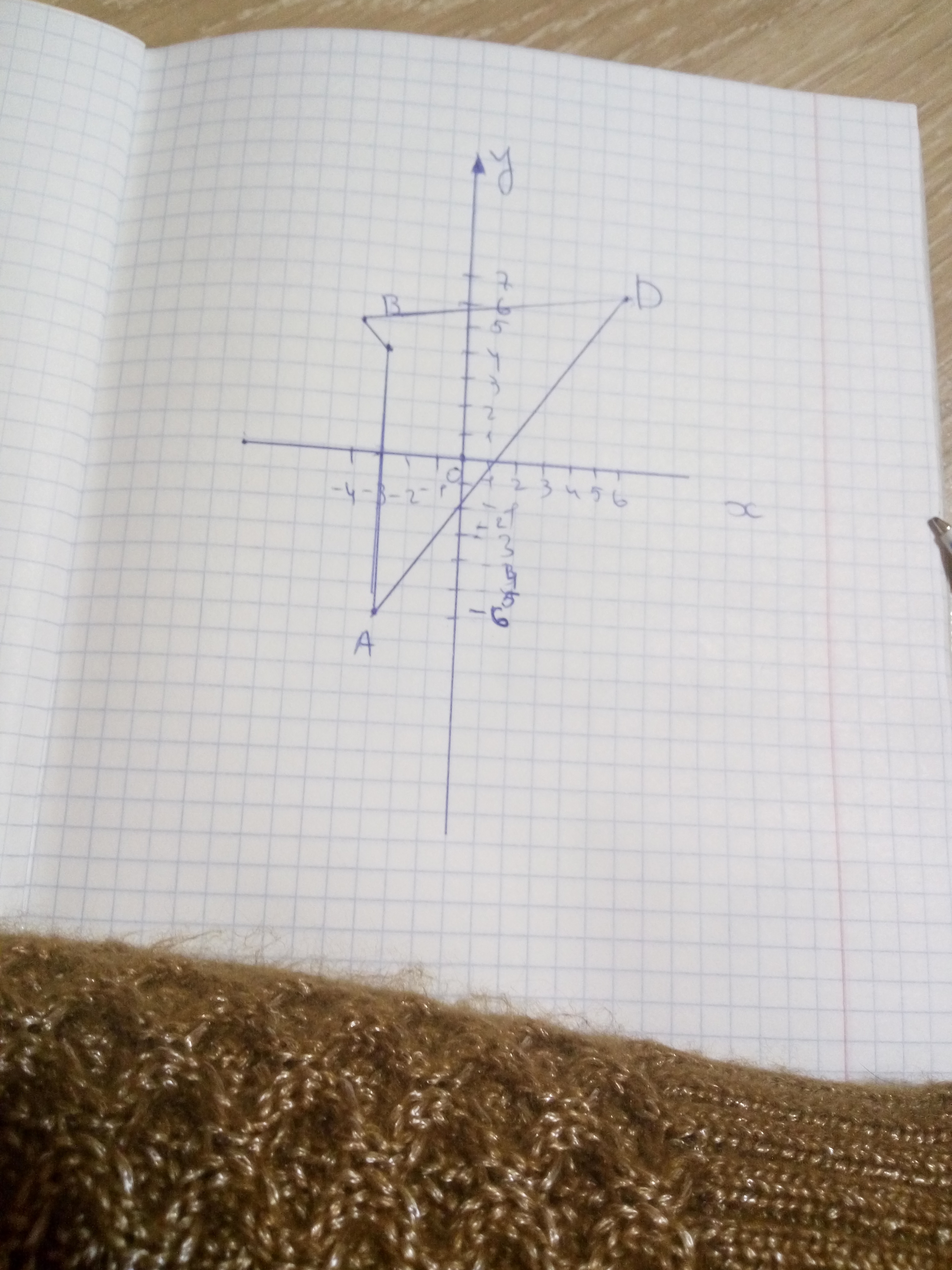 постройте четырехугольник ABCD ,если заданы координаты его вершин A (-3;-6) B (-3;4) C (-4;5) D (6;7)