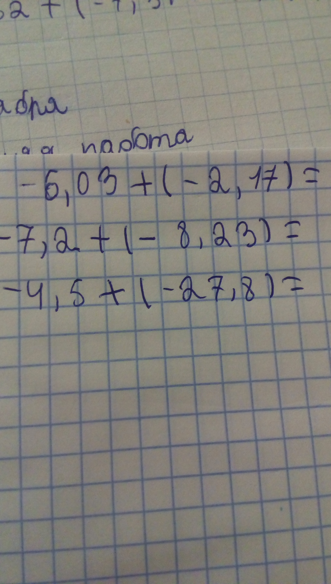 значение суммы -6,03+(-2,17)=-8,2