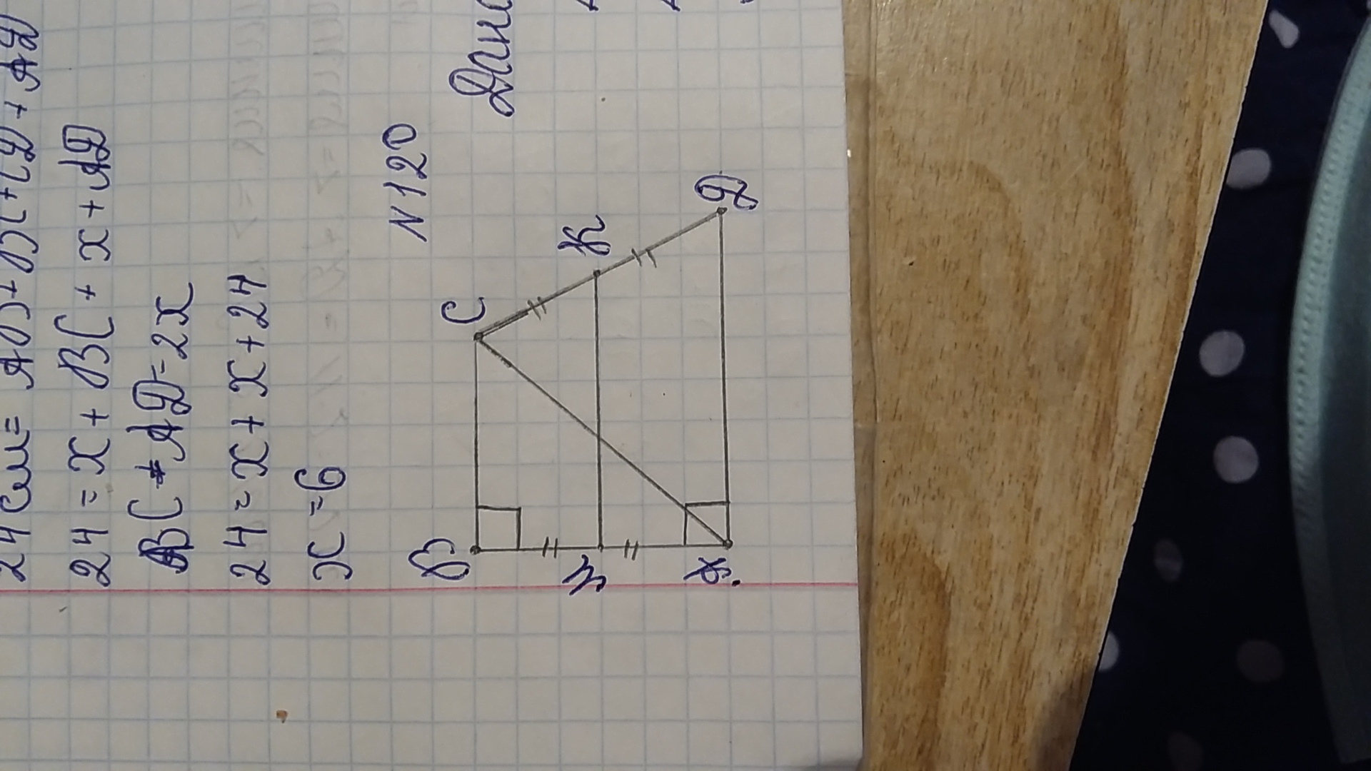 Даю 25 баллов.Помогите пожалуйста решить задачу по геометрии. Прямоугольная трапеция делится диагональю на прямоугольный и равносторонний треугольники . Найдите среднюю линию трапеции, если периметр равносторо него треугольника 27 дм. Вот рисунок.
