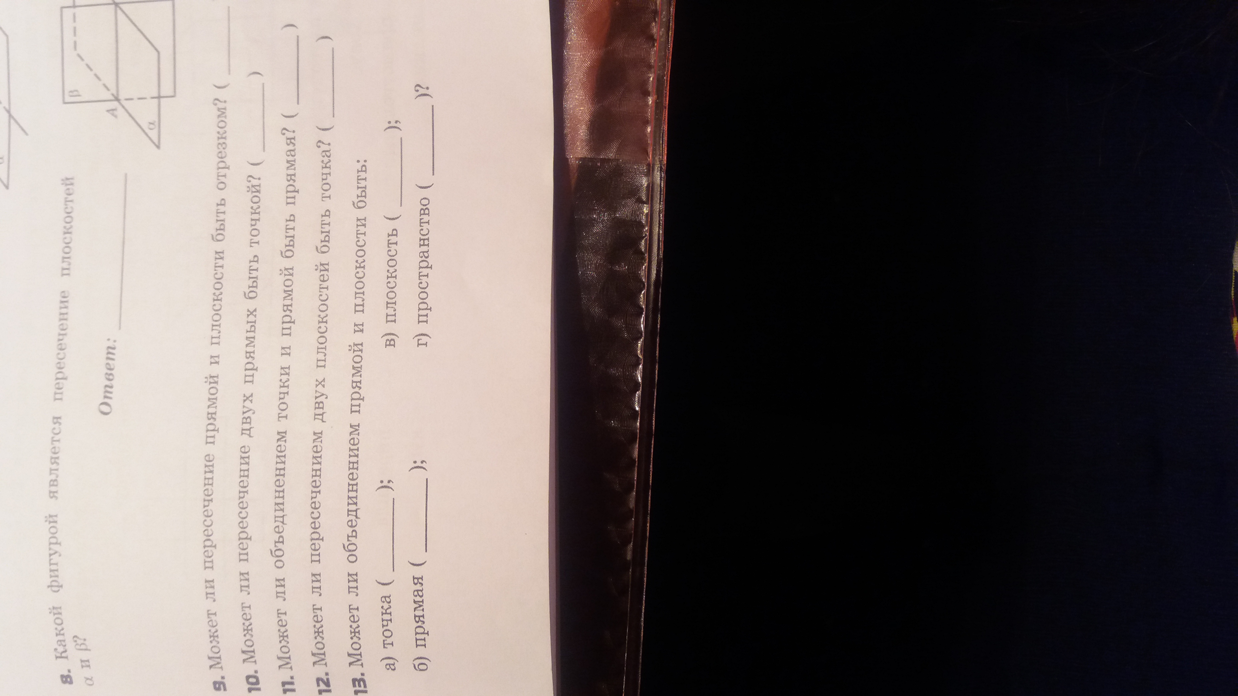 12. Две плоскости пересекаются по прямой. ОТВЕТ - точка - нет.