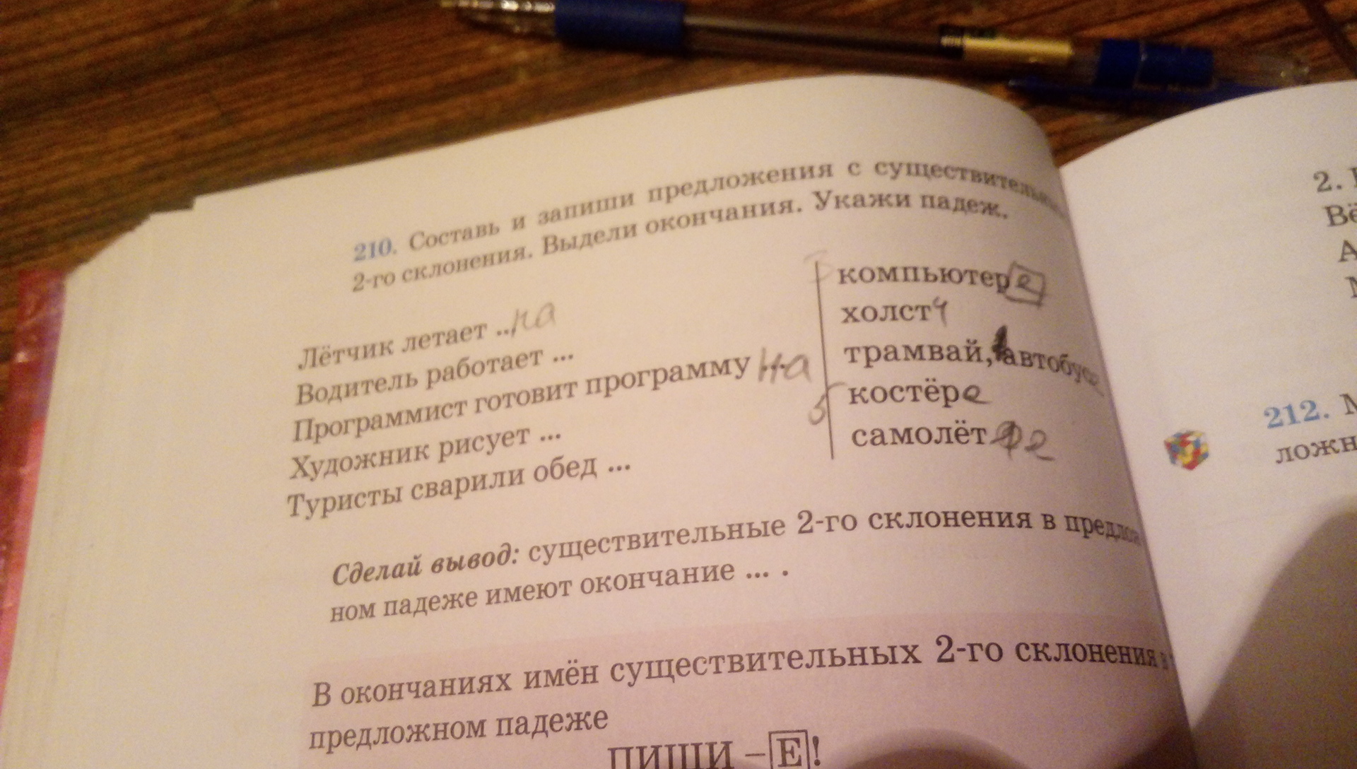 Составь и запиши предложения с существительными 2 склонения Выдели окончания укажи падеж