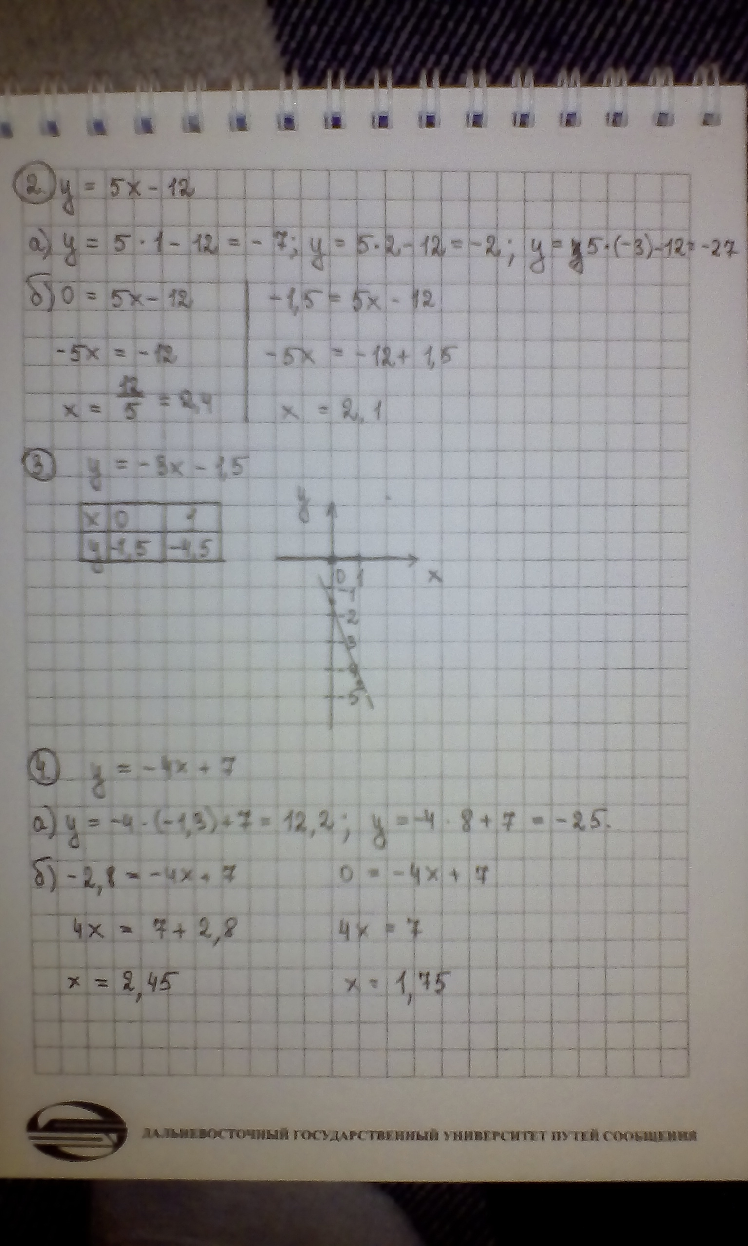 2. Линейная функция задана формулой у = 5х – 12. Найдите:а) значение у, если х = 1,2; –3;б) значение х, при котором у = 0; –1,5.
