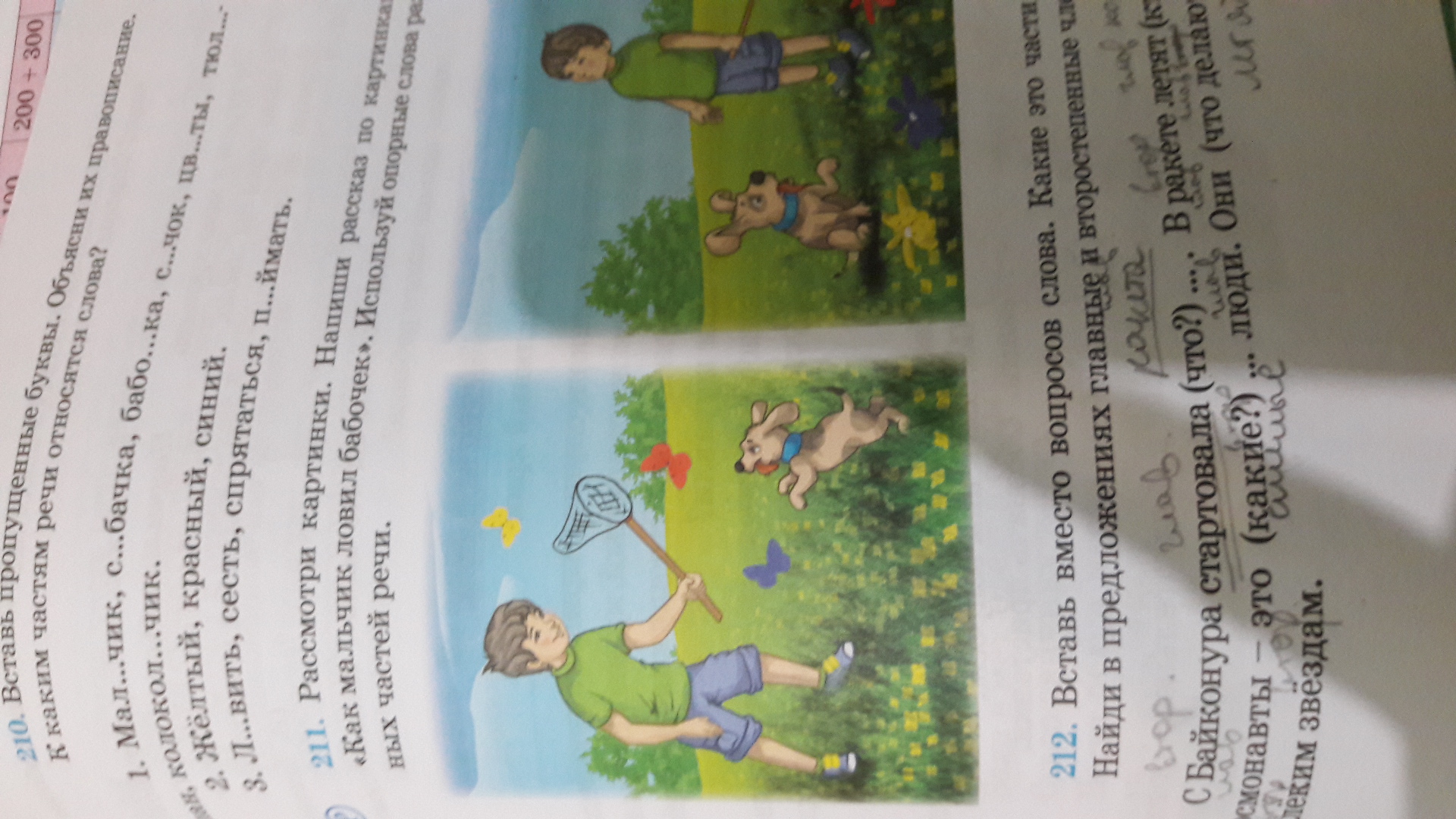рассмотри картинки. Напиши разказ по картинкам "Как мальчик ловил бабочек". Используй опорные слова разных частей речи.