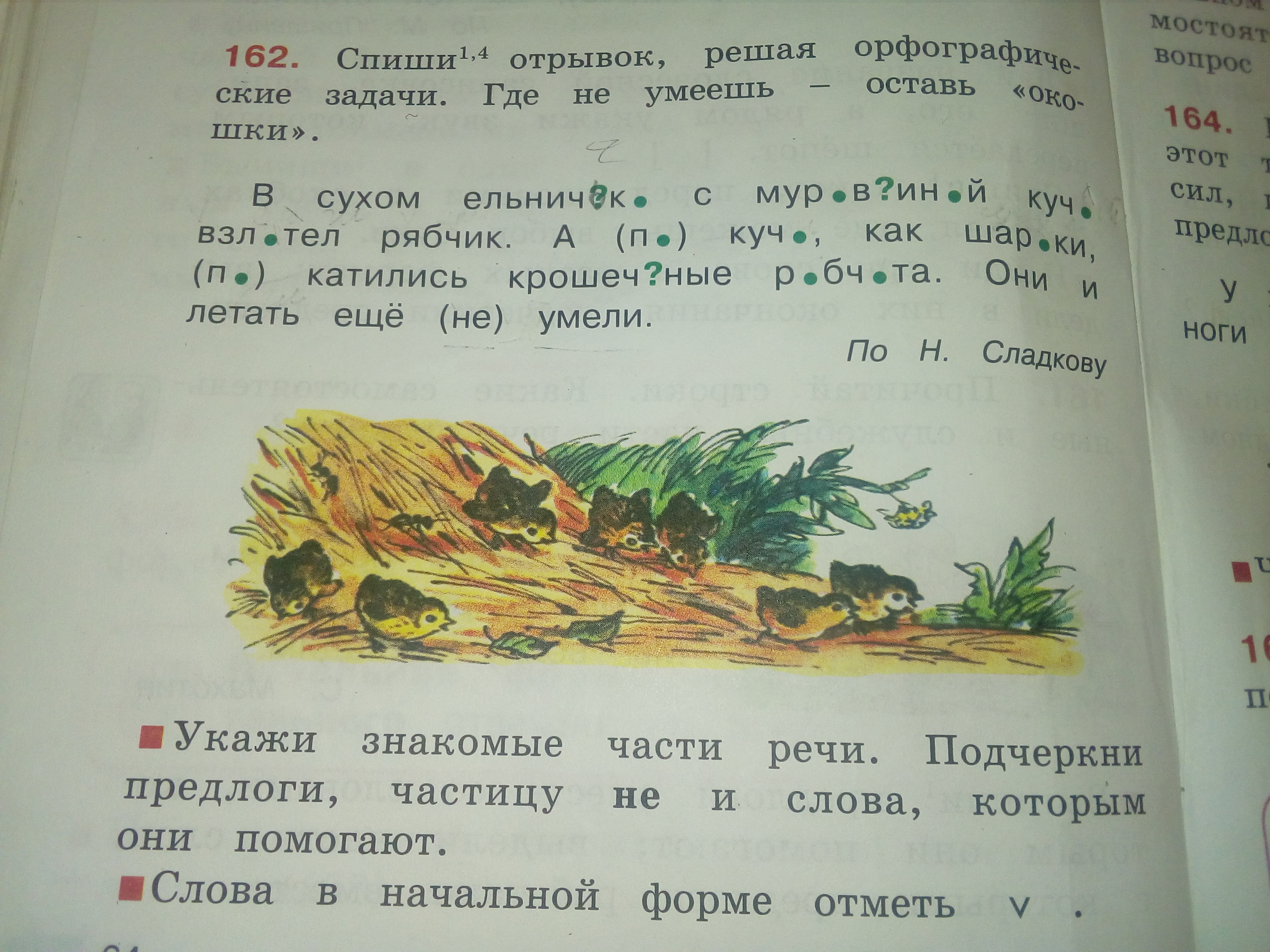 В сухом ельничке с муравьиной кучи взлетел рябчик.А по куче,как шарики,покатились крошечные рябчата.Они и летать еще не умели