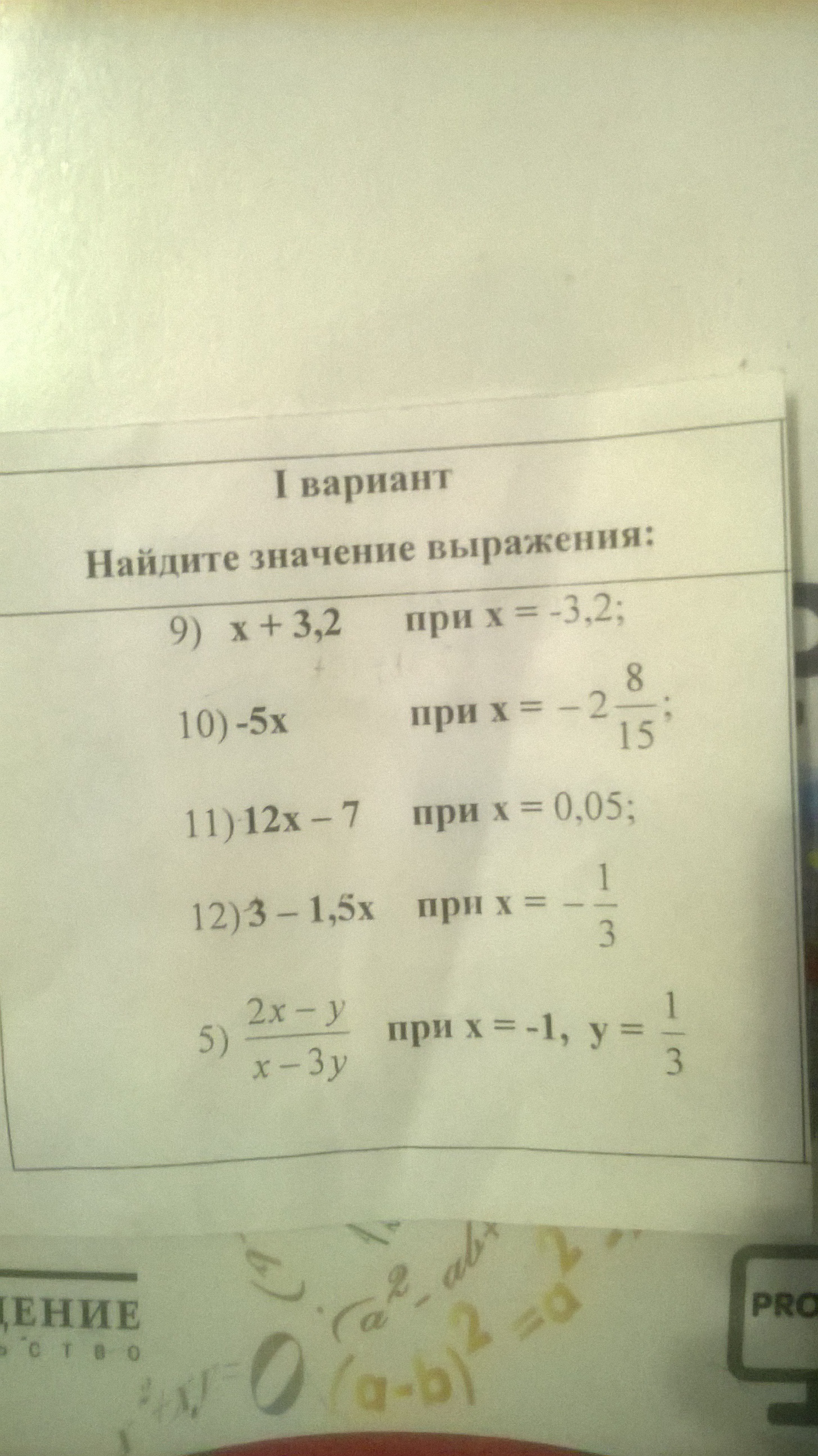 Б) -5x при x=-Две целых восемь пятнадцатых;