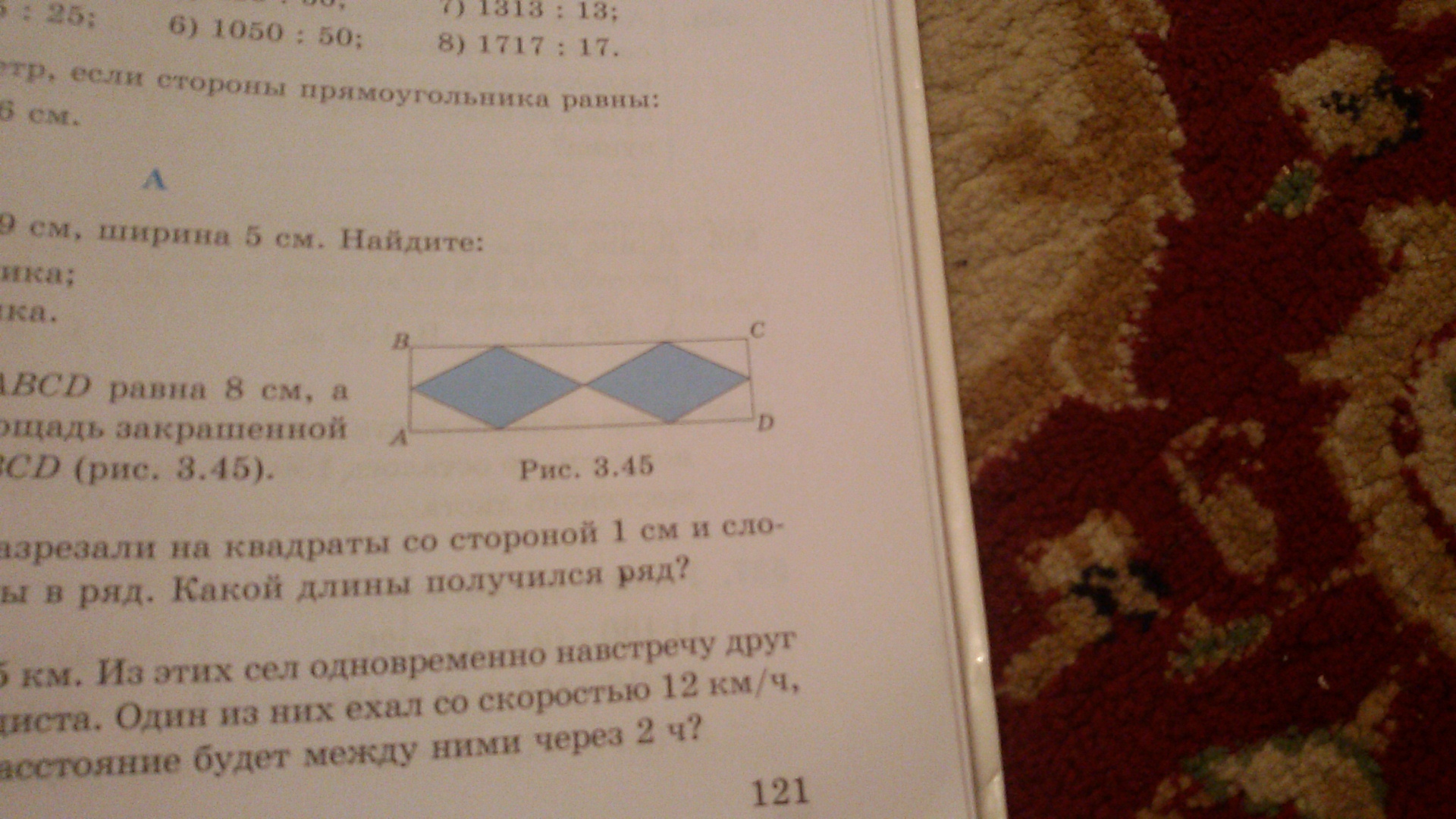Длина прямоугольника ABCD равна 8 см , а ширина 2 см . Найдите площадь закрой части прямоугольника ABCD (рис. 3.45).