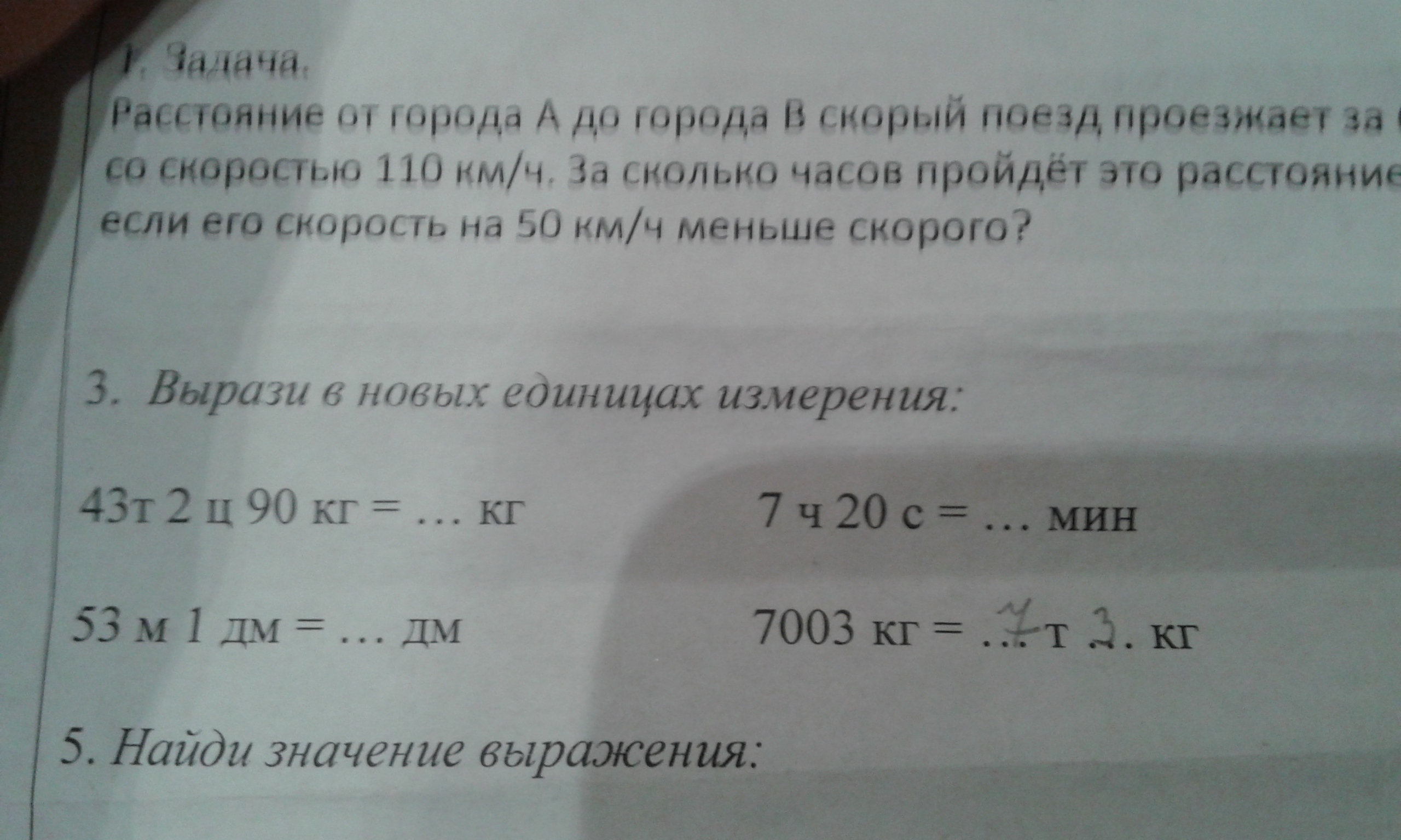 1) 43290 кг 2) 531 дм 3) 440 мин 4)7 т и 3 кг