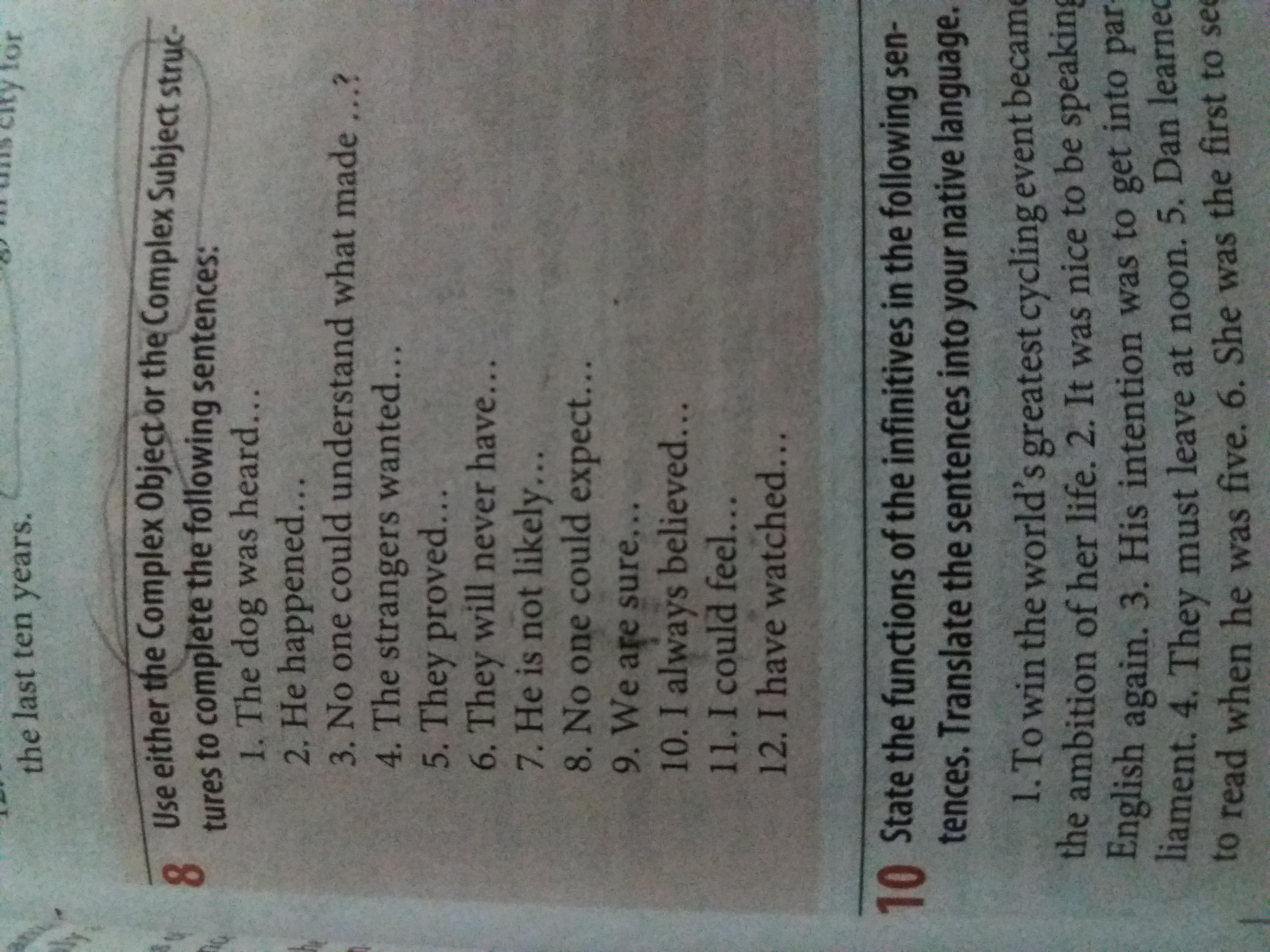 1 barking 2 to be a good boy 3 him run away 4 to be fed 5 tobe honest 6 them caught 7 to die 8 her come back 9 to be back soon 10 him to frank 11 the train start 12 they go away