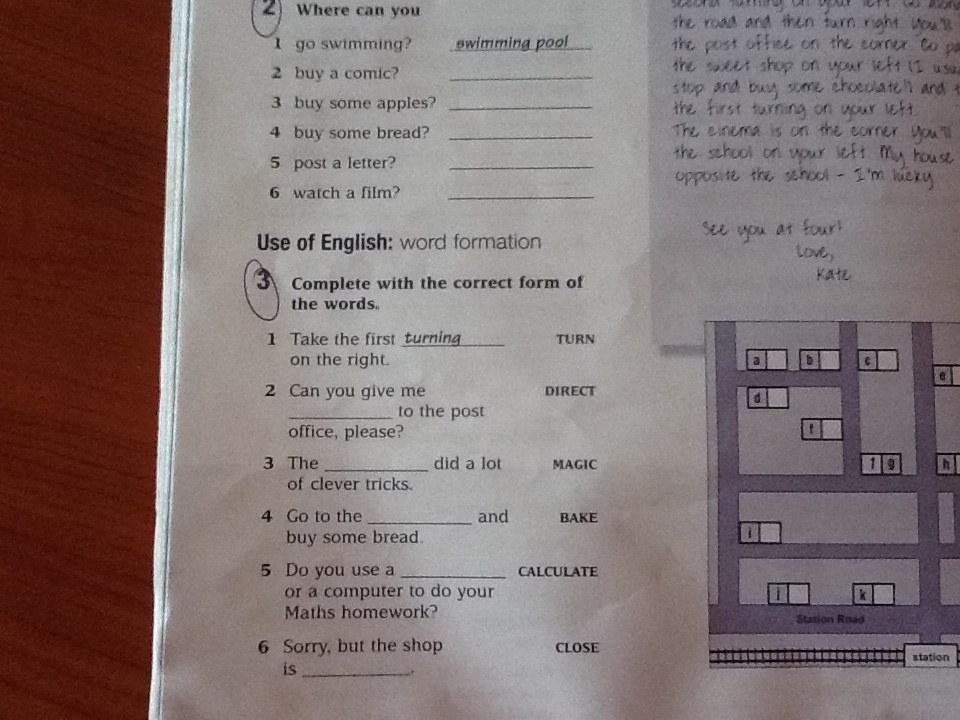 3. direction, magician, bakery, calculator, closed