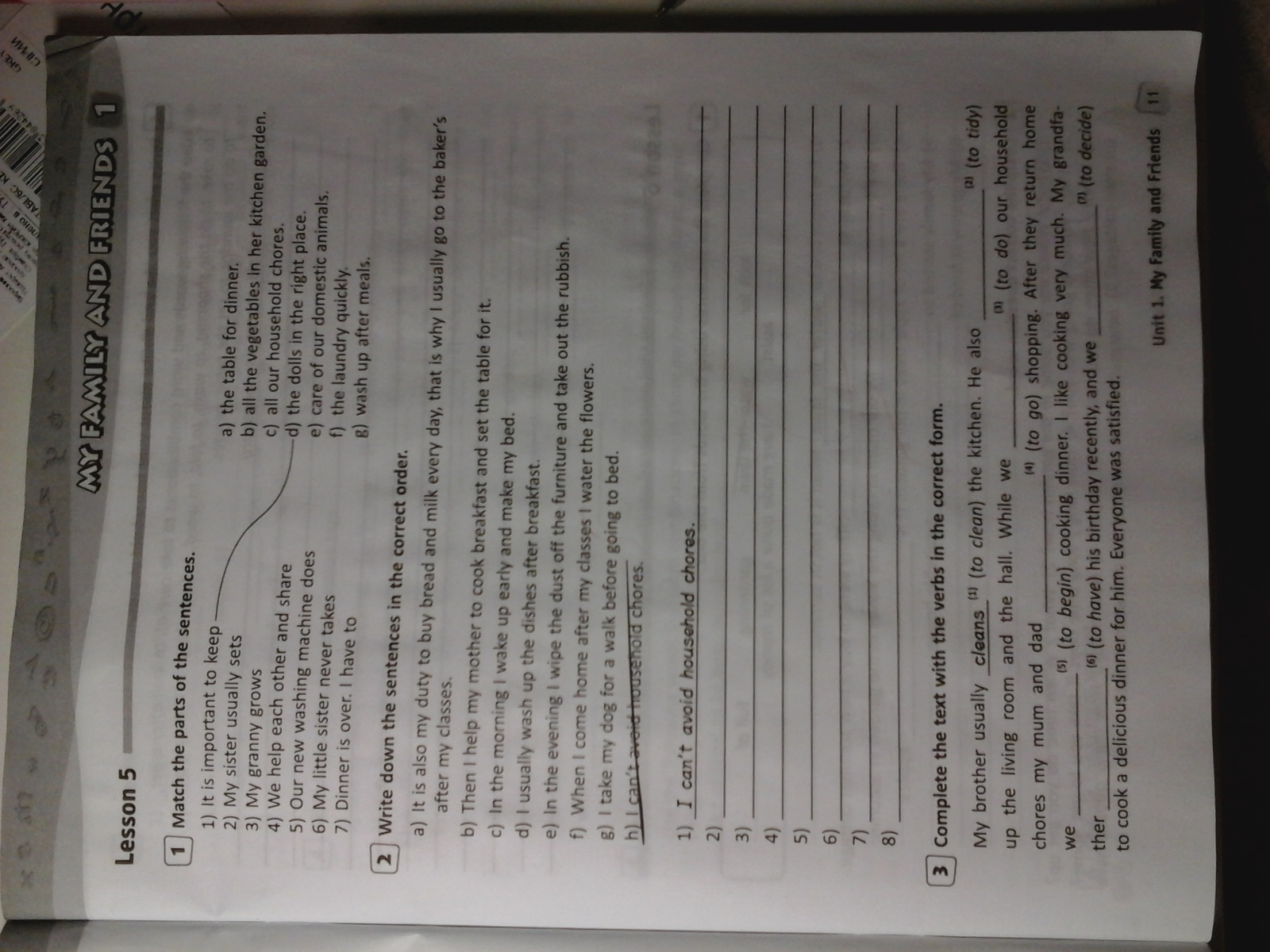 1. 2) a, 3)b, 4)c, 5)f, 6)e, 7)g