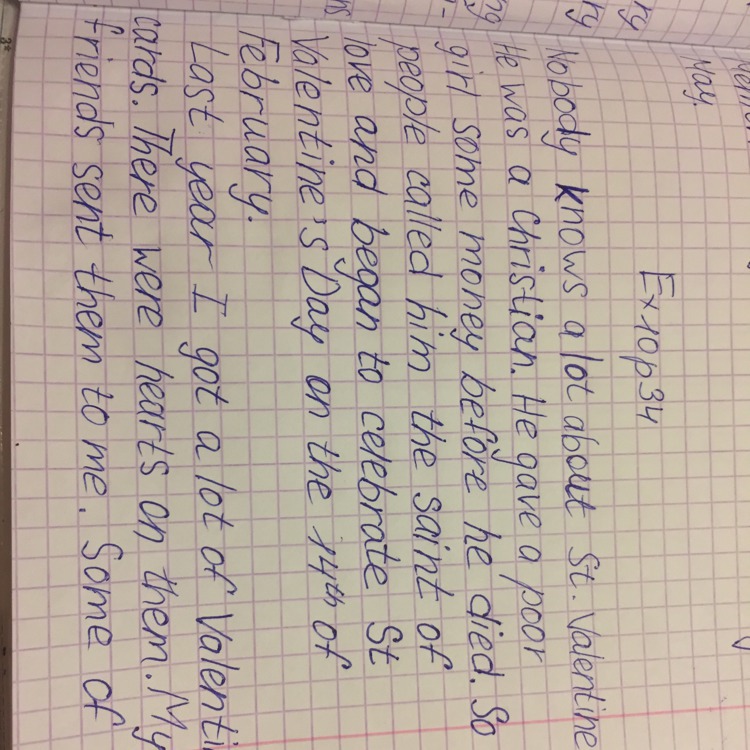 В прошлом году я получил много валентинок.Там было много сердечек.Мои друзья отправили их мне.