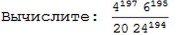 4¹⁹⁷*6¹⁹⁵/20*24¹⁹⁴ =4³*4¹⁹⁴*6*6¹⁹⁴/20*24¹⁹⁴ = 4³*6/20 = 384/20 = 19.2-ОТВЕТ