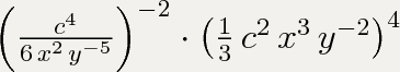 ((c^(4))/(6x^(2)y^(-5)))^(-2) * ((1)/(3)c^(2)x^(3)y^(-2))^(4)
