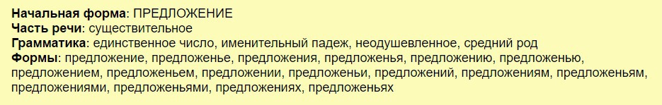 Предложение-Сущ.,н.ф-Предложение.,с.р.,ед.число.,И.п или В.п (Зависимо от слова,с которым связанно) .,2 лицо .