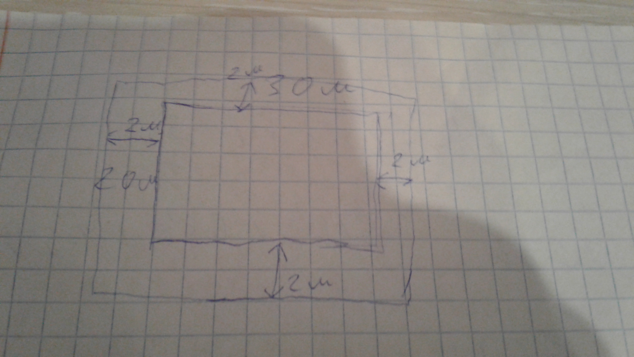 Люди помогите! Математика:Длина садового участка 30 м, а ширина 20 м. Вокруг участка на расстоянии 2 м от каждой его стороны проложена тропинка. Выполните схематический рисунок и вычислите длину тропинки. Зарание спасибо!