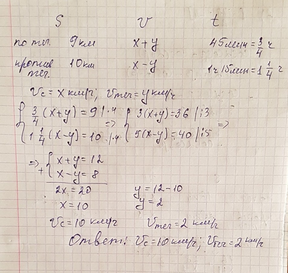 по течению 9 км, при этом по течению она шла 45 мин, а