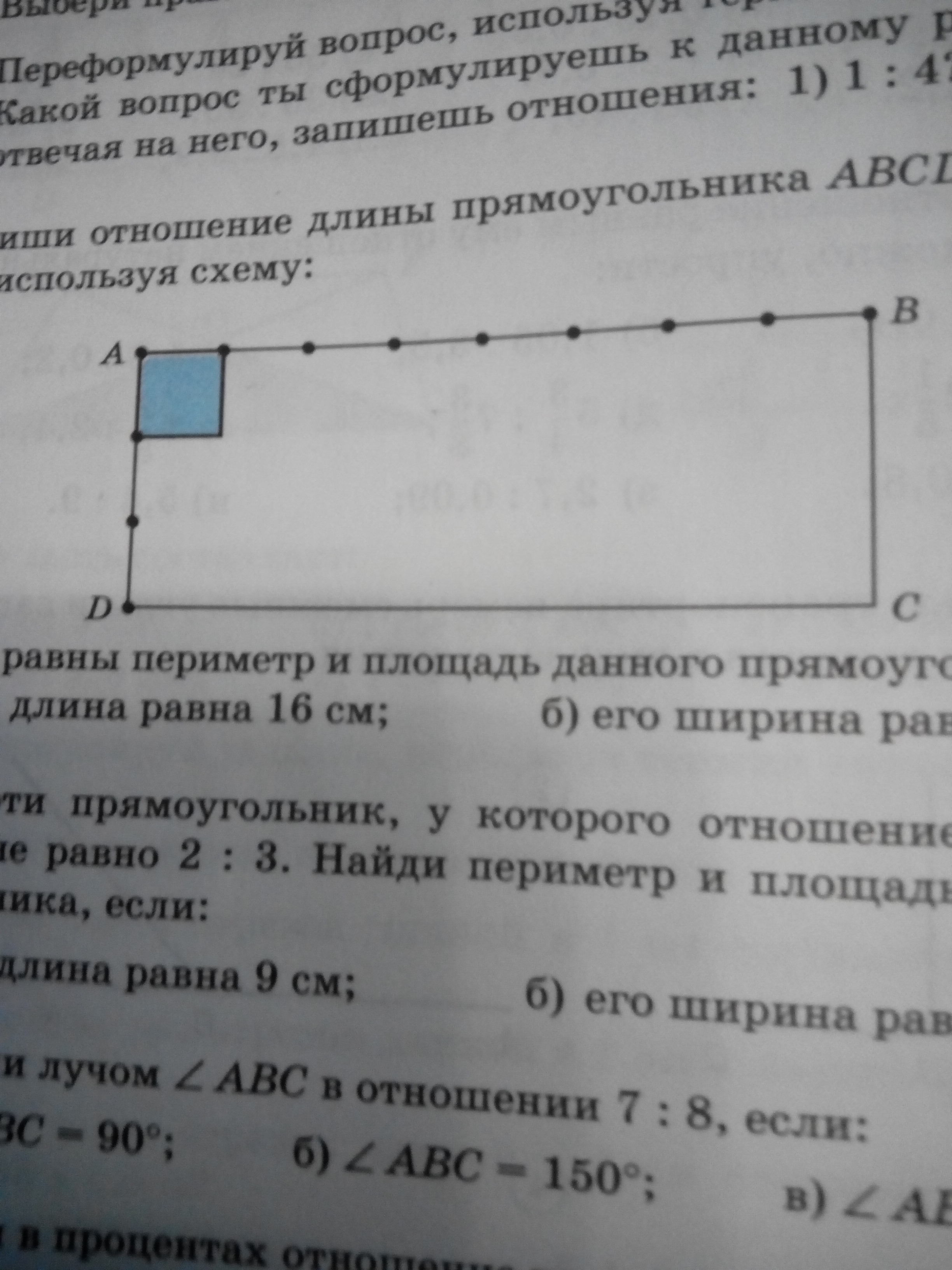 Запиши отношение длины прямоугольника ABCD к его ширине, используя схему: