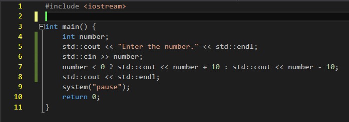 1) Ввести число. Если оно неотрицательно (больше 0), вычесть из него 10,