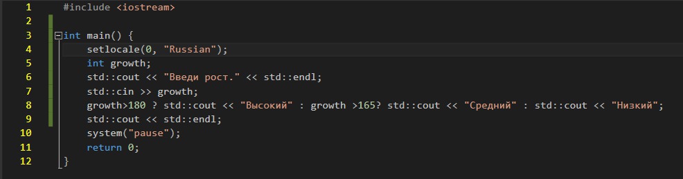 4) Ввести рост человека. Вывести на экран “высокий”, если его рост