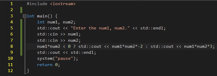 2) Ввести 2 числа. Если их произведение отрицательно, умножить его на