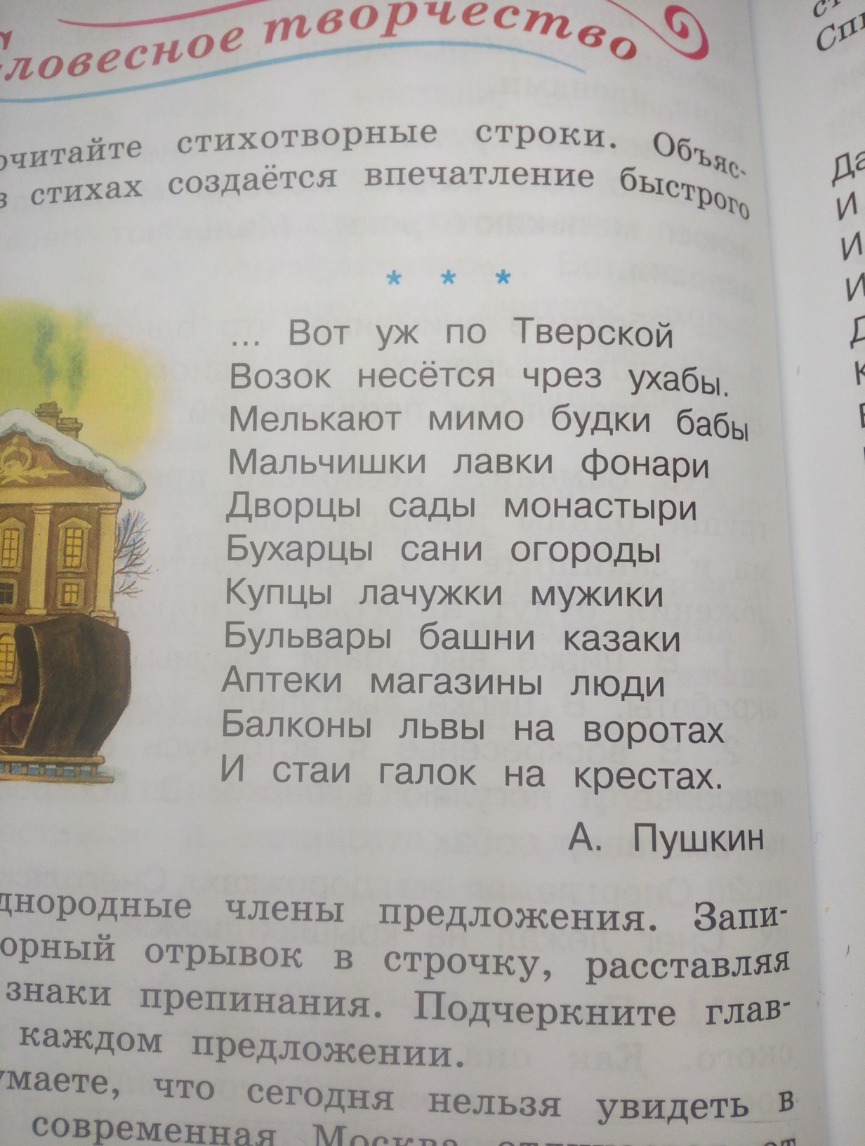 Однородные члены это слова одной части речи в одном предложении. В данном отрывке однородными членами являются все слова во втором предложении ДО слов на воротах