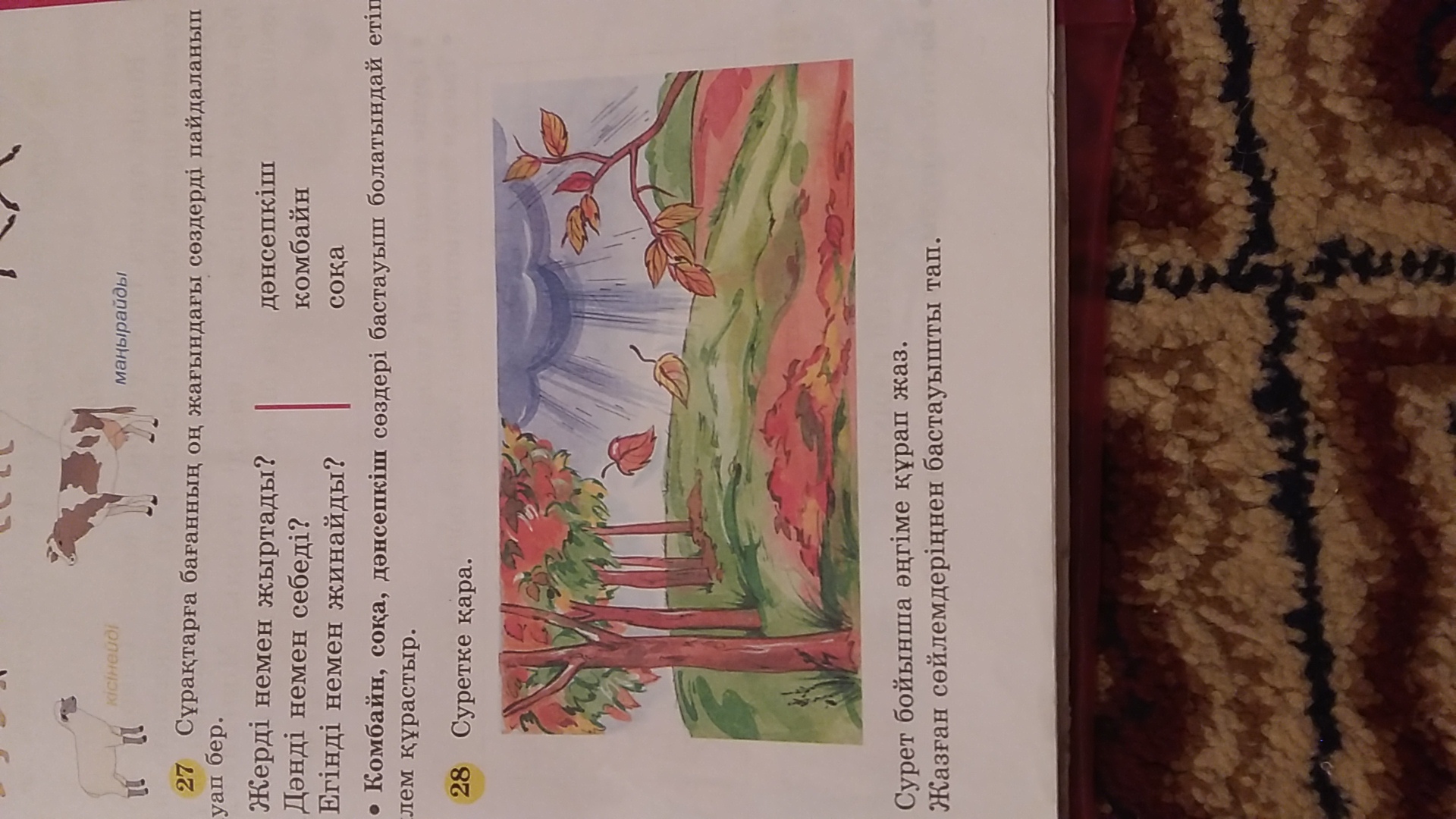 Күз келді.Жапырақтар сарғайып кун суыта бастады.Адамдар күздік киімдерін киіп,жеміс-жидектер пісіп жетіледі.Маған күз мезгілі өте қатты ұнайды.