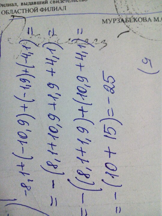 минус 8,1 плюс скобка открывается минус 10,9 скобка закрывается плюс скобка открывается минус 1,9 скобка закрывается плюс скобка открывается минус 4,1 скобка закрывается