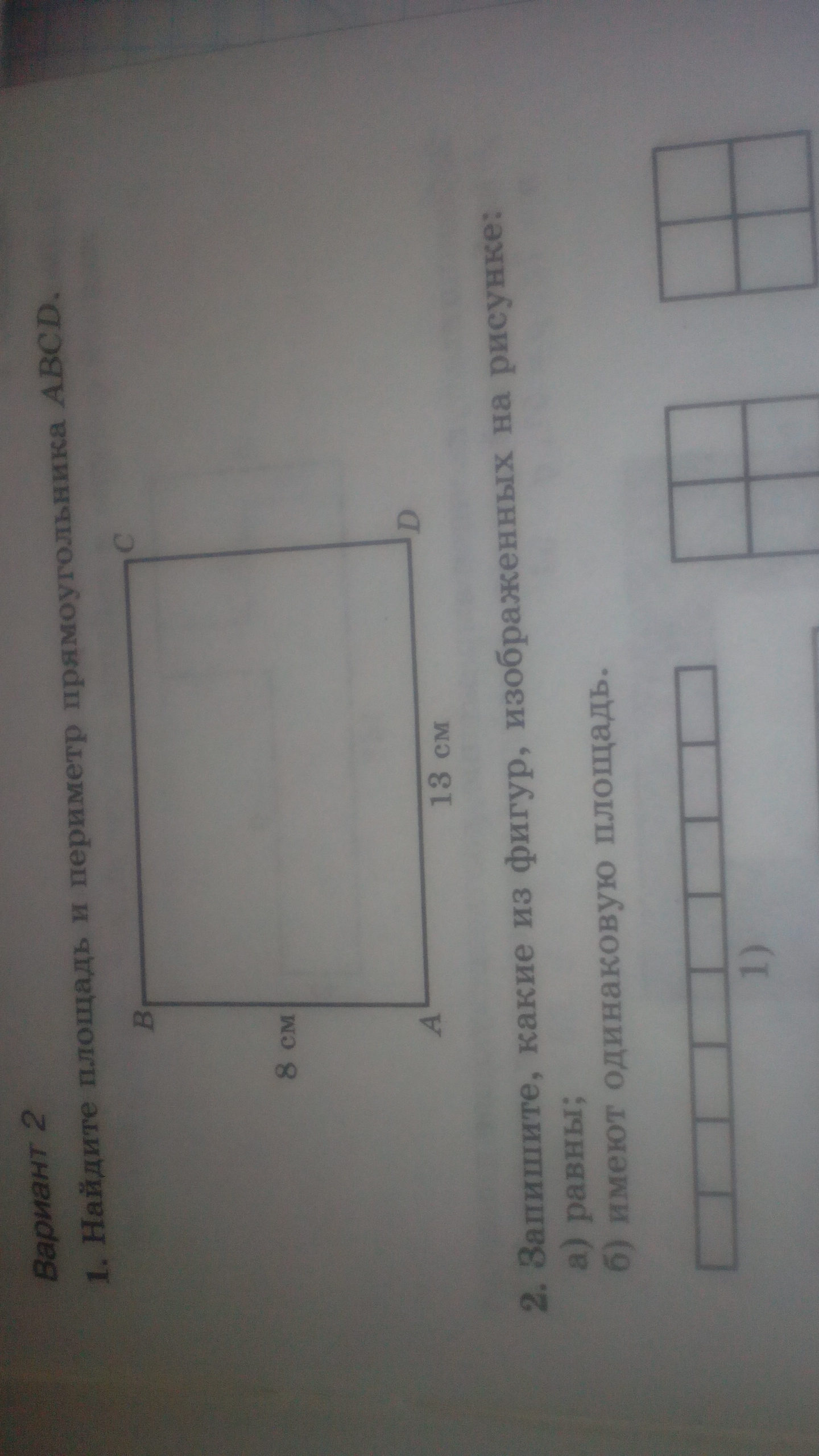 Площадь — 104 см, периметр — 42 см. Второе задание обрезано.
