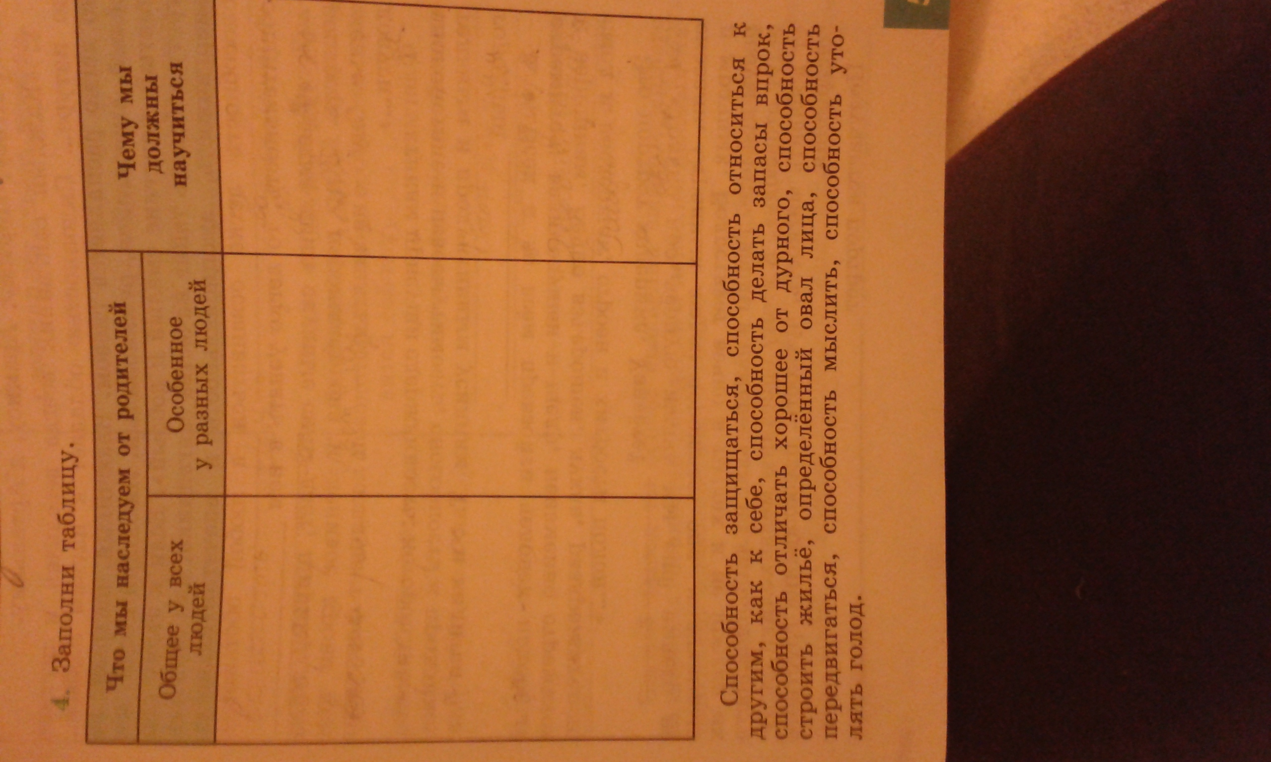 3 колонка- способность относиться к другим как к себе, способность отличать хорошее от дурного.