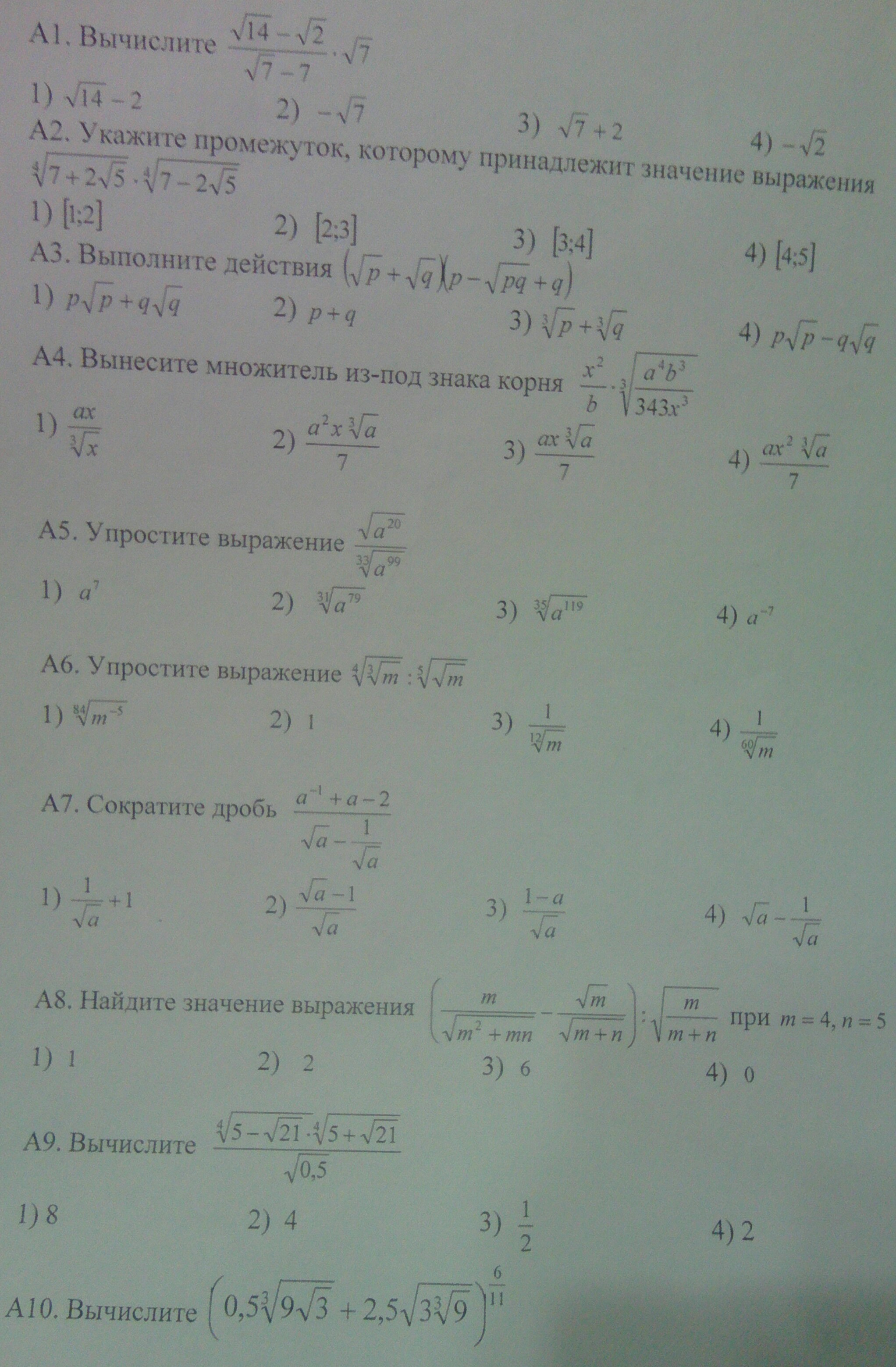 A1 =(√2*(√7-1) / (√7(1-√7)) *√7=-√2 Ответ 4