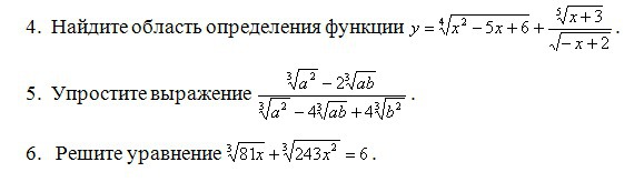 ![y= sqrt[4]{x^2-5x+6}+ frac{ sqrt[5]{x+3} }{ sqrt{-x+2} } y= sqrt[4]{x^2-5x+6}+ frac{ sqrt[5]{x+3} }{ sqrt{-x+2} }](https://tex.z-dn.net/?f=y%3D+sqrt%5B4%5D%7Bx%5E2-5x%2B6%7D%2B+frac%7B+sqrt%5B5%5D%7Bx%2B3%7D+%7D%7B+sqrt%7B-x%2B2%7D+%7D++)