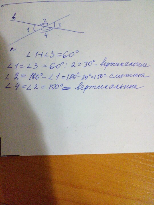 сумма 2 углов полученных при пересечении прямых ровна 60 градусов.Найдите градусные меры всех углов