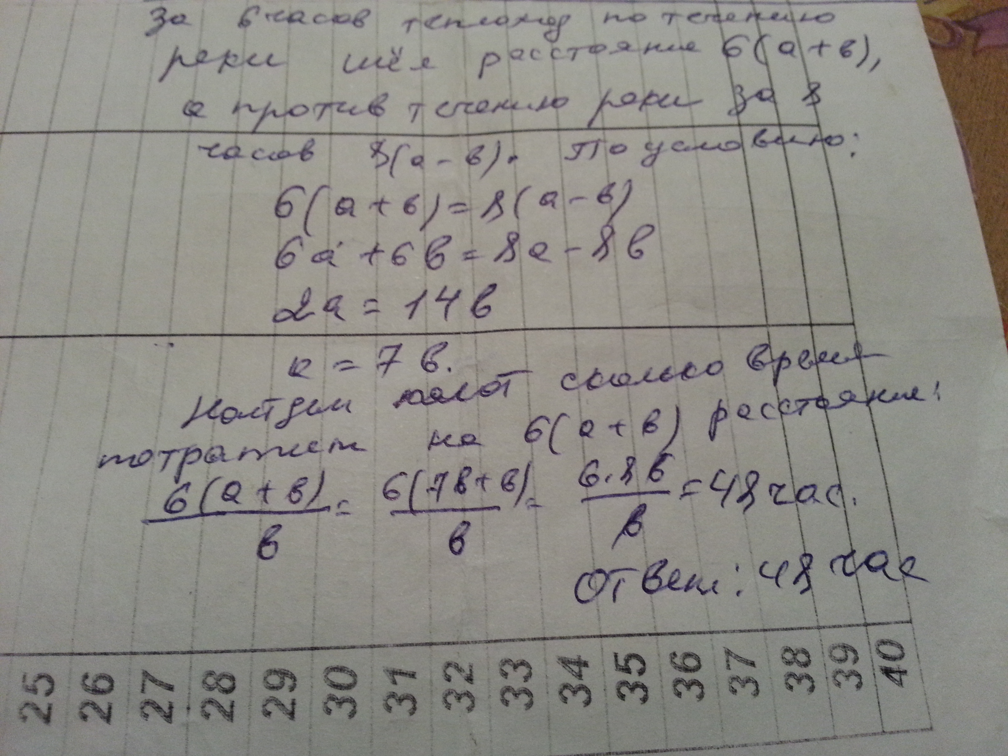 Пусть у теплохода скорость а будет, а плота скорость в. (ЕДИНИЦЫ скорости)