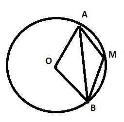 ∠АОB=132°он является центральным углом, ∠АMВ=1/2∪АВ как вписанный угол, опирающийся на ∪АВ. ∪АВ=360-132=228°