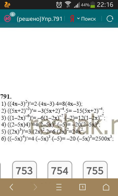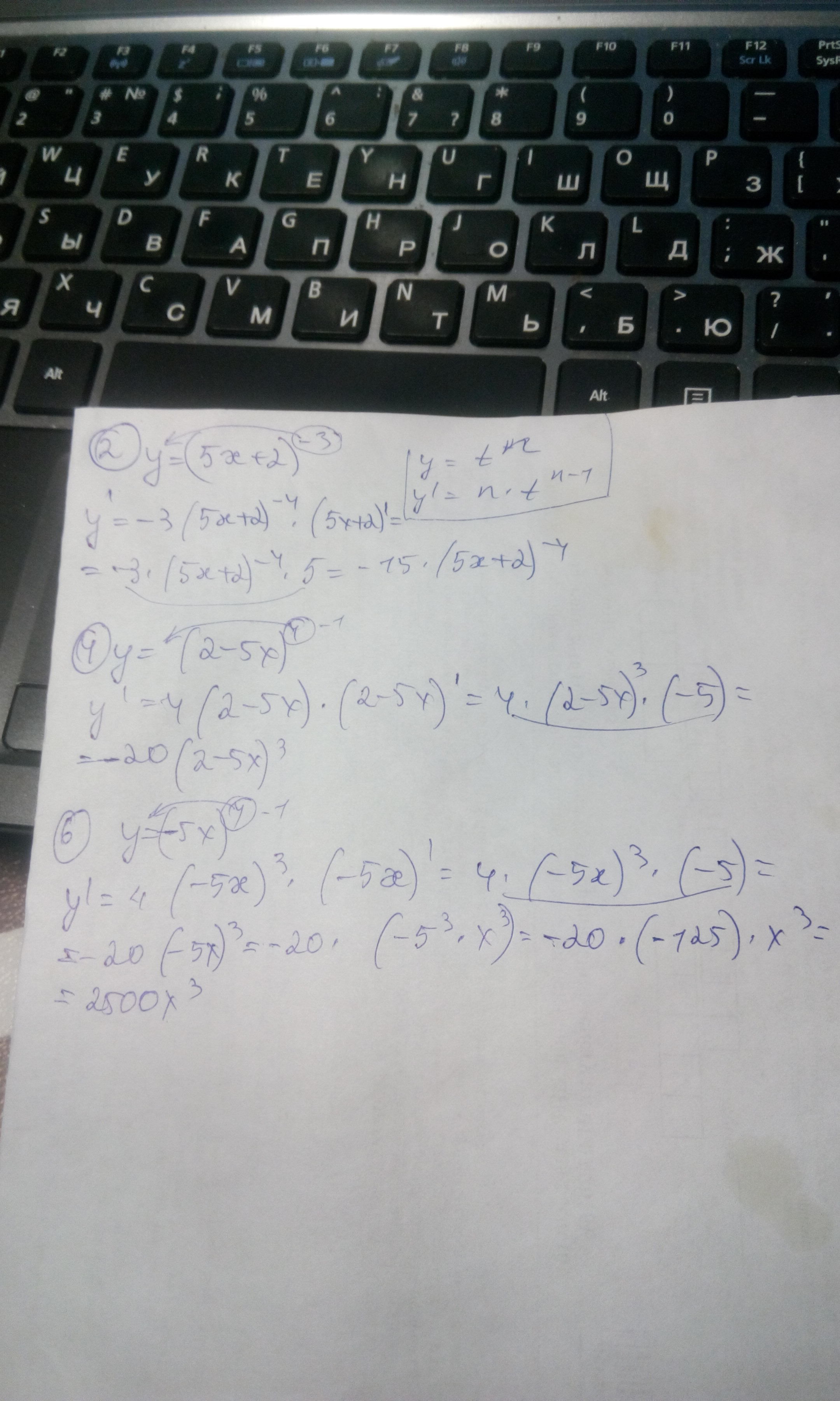 Решаем по формуле производная степени.Но т.к.функция сложная, то ещё домножаем на производную аргумента.