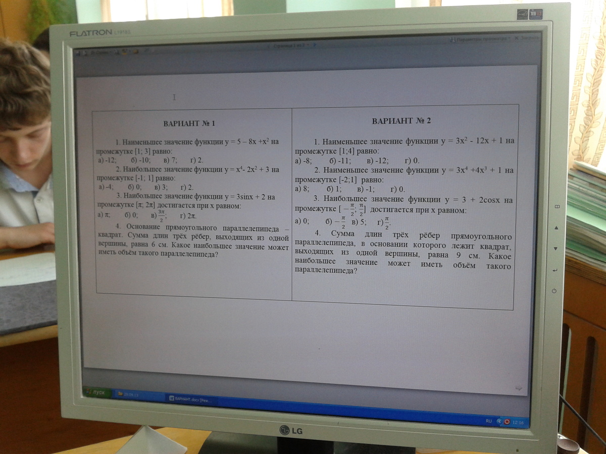 Просчитываем значение функции в полученых точках и на концах отрезка: