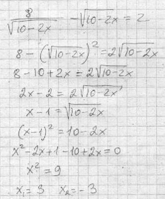 Корень арифметический, то есть не отрицательный. Замена √(10-2x)=y