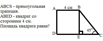 ответ: площ квадр 16см^2 а площ трап 24 см^2